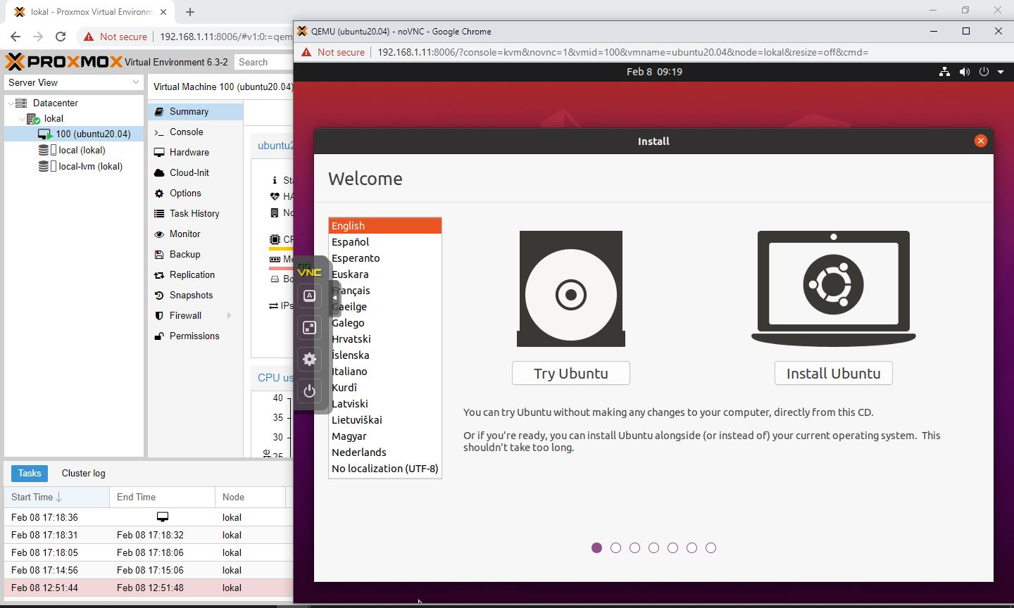 Antar muka pengguna Proxmox berbasis web untuk itu dibutuhkan sebuah komputer yang terhubung dalam satu jaringan dengan server proxmox,